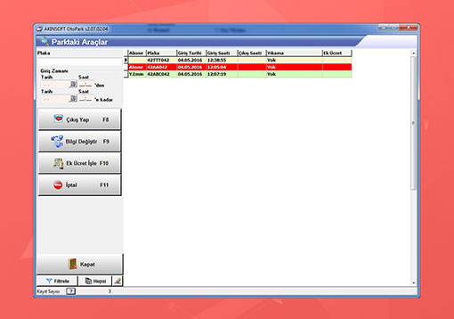 * Plakaya göre araç giriş ve çıkış takibi yapabilir,